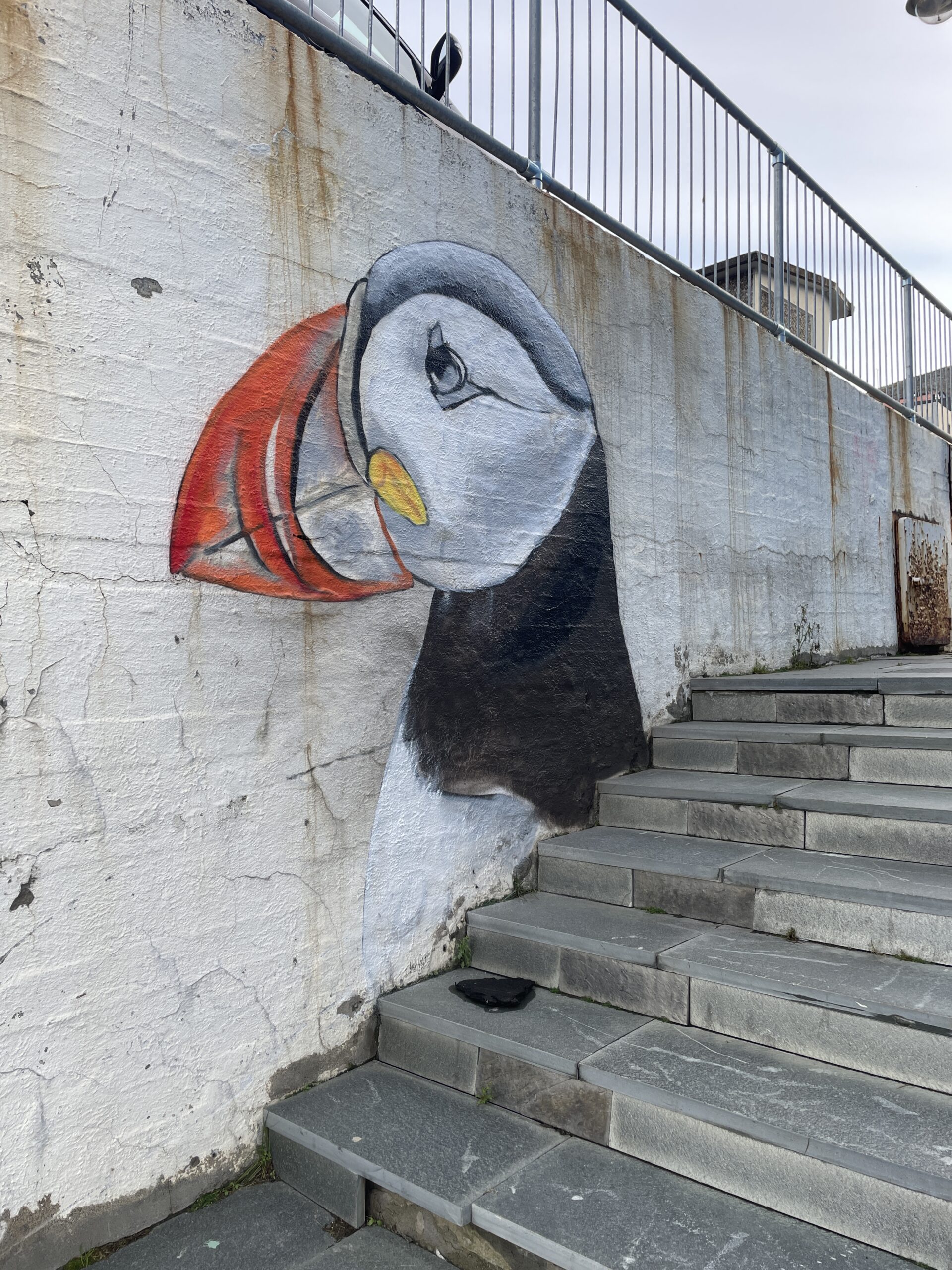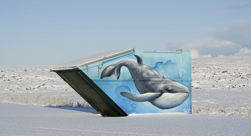 Hun trekker også fram utsmykkingen ved Kvalsund skole, hvor to av hennes verk pryder biblioteket, samt kunstcontaineren med lundefugl og hval ved Knivskjellodden.