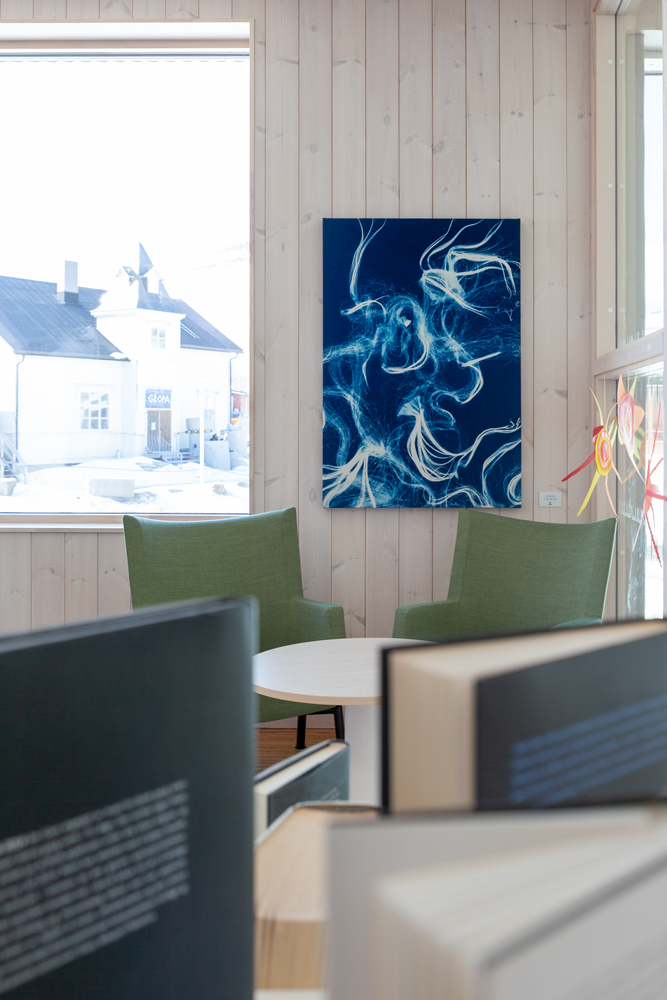 Hun har levert utsmykking til både Båtsfjord og Kvalsund skole med dette temaet. Samarbeid er en sentral del av Emmas praksis.